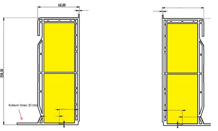 - 3-komorový silnostěnný profil, izolovaný PUR 40 mm